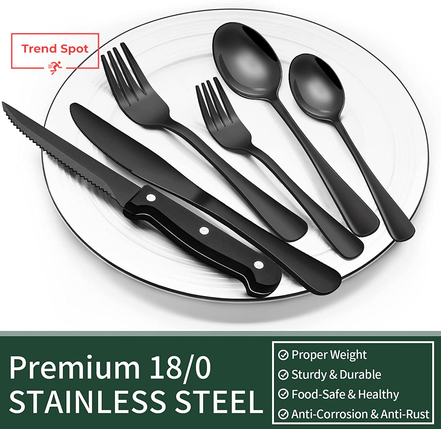 24-Piece Black Silverware Set with Steak Knives, Black Flatware Set for 4, Food-