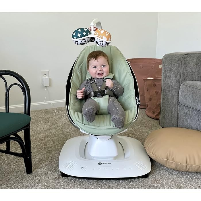 The new Find Your Roo feature in the 4moms app will help you discover the motion and speed combination that are most like your own, supporting a seamless transition from your arms to the swing. Safety is our top priority. This product is not intended, designed, or marketed for sleep or unsupervised use. If baby falls asleep, move baby as soon as possible to a firm, flat sleep surface such as a crib or bassinet.