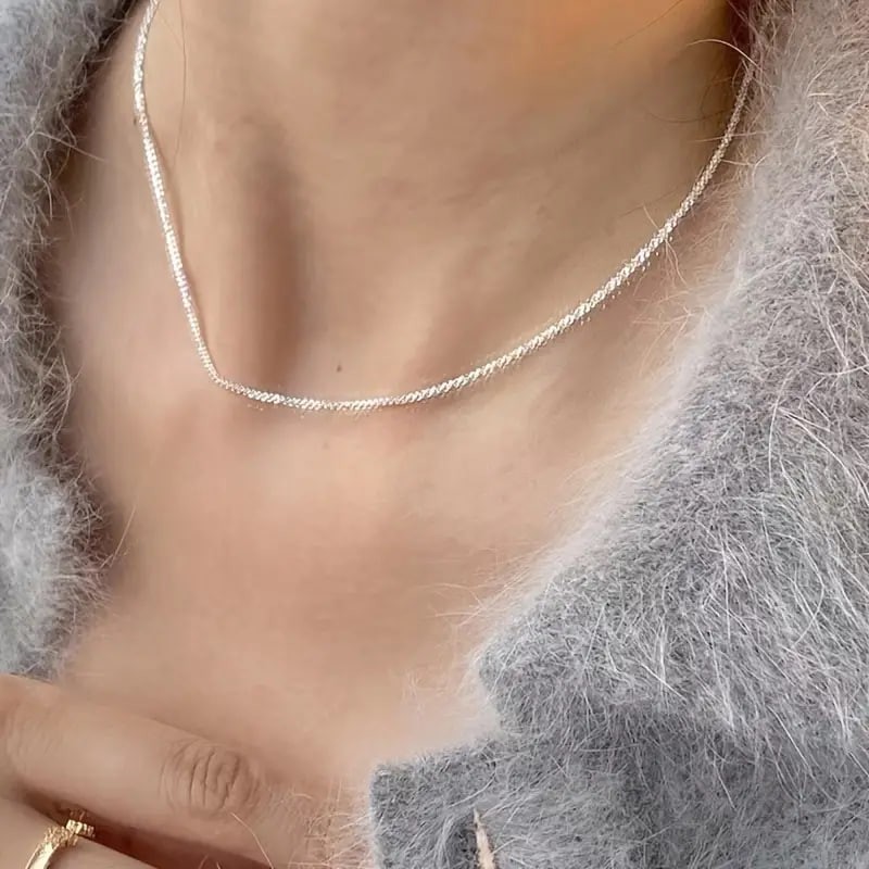925 Sterling Silver Necklace Female Silver Chain Without Pendant 925 Clavicle Chain Naked Chain Galaxy Chain Thin Chain Stacked