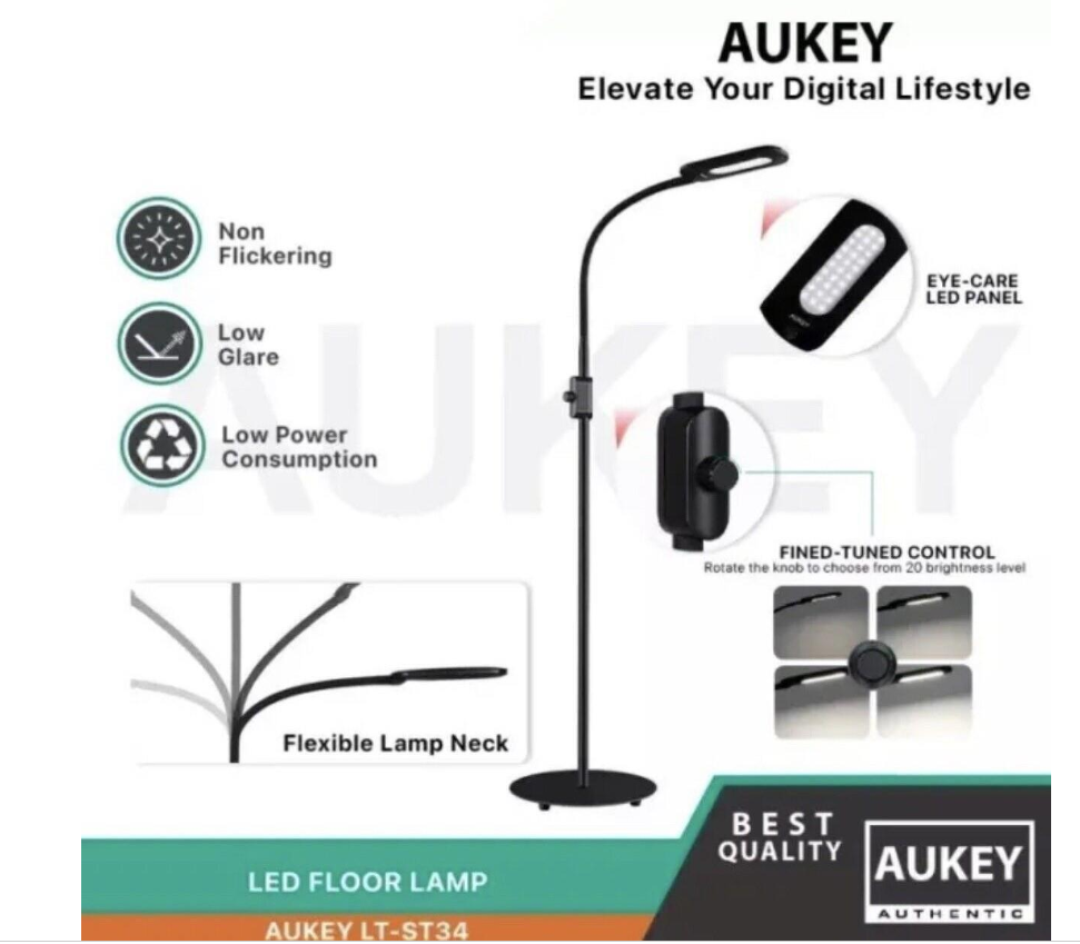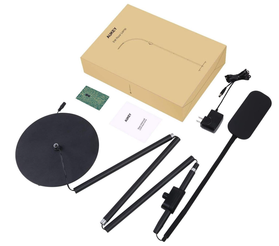 Package Contents: AUKEY LT-ST34 8W Floor Lamp, Power Adapter, User Manual.
