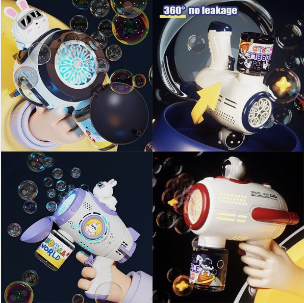 360°Rotatable Without Leakage - The 360-degree leak-proof design bubble gun does not leak bubble fluid leaving hands dirty or sticky. The leak-proof silicone sealing ring ensures a perfect fit with the bubble gun and bottle. 360 degrees rotatable, shoot bubbles in different directions then be surrounded by bubbles in a moment.