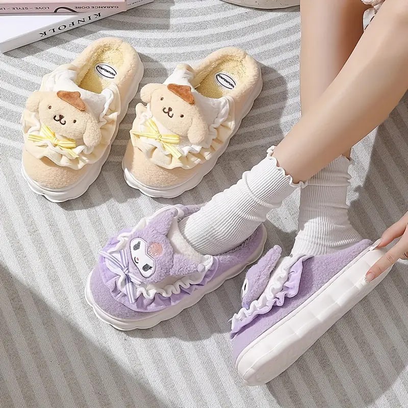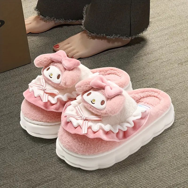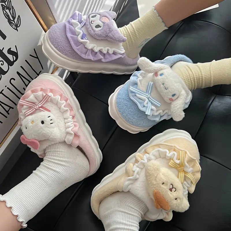 Cute Cartoon Sanrio Kulomi Novelty Slippers, Hellokitty & Melody Kawaii Non-slip Soft Fuzzy Home Slippers, Plush Cozy Shoes