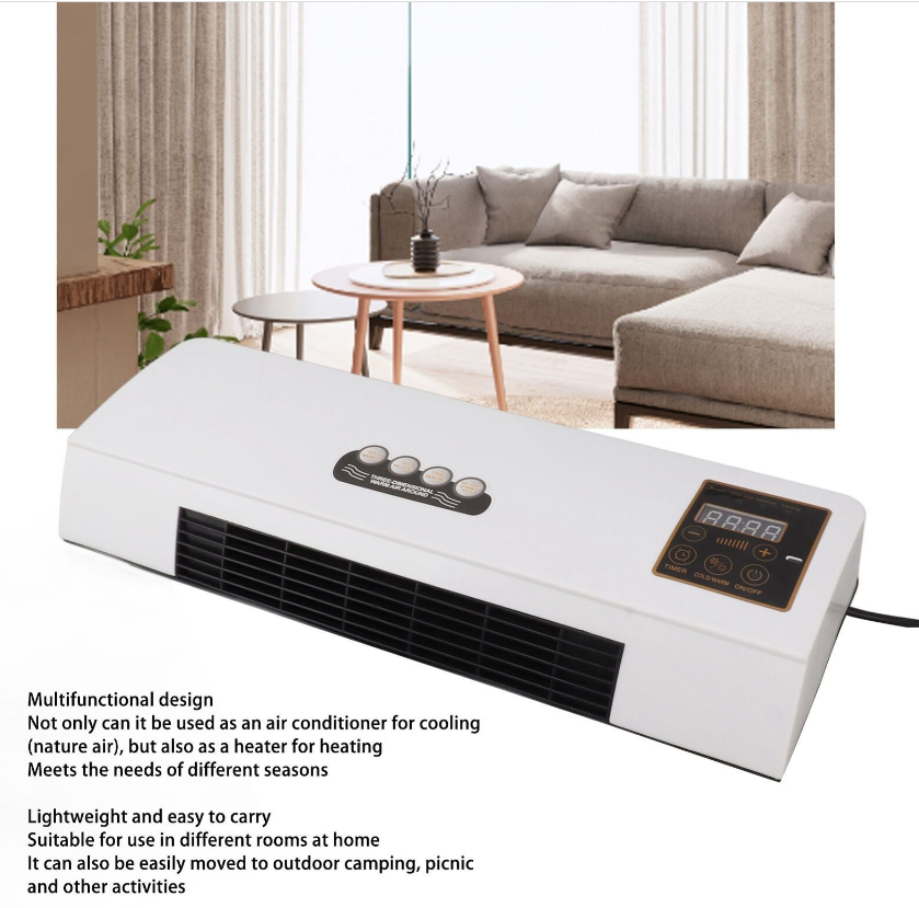 1. Multifunctional Design: Not only can it be used as an air conditioner to cool down (nature air), but also can be used as a heater to heat up, 3 seconds fast heat up, instantly turn on and heat up, to meet the needs of different seasons.