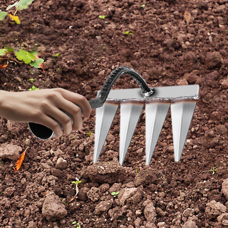 【Welded by Hand】Garden tool is made of sturdy carbon steel material, welding by hands, steel tines, sharpness, rust resistant, and durable.
