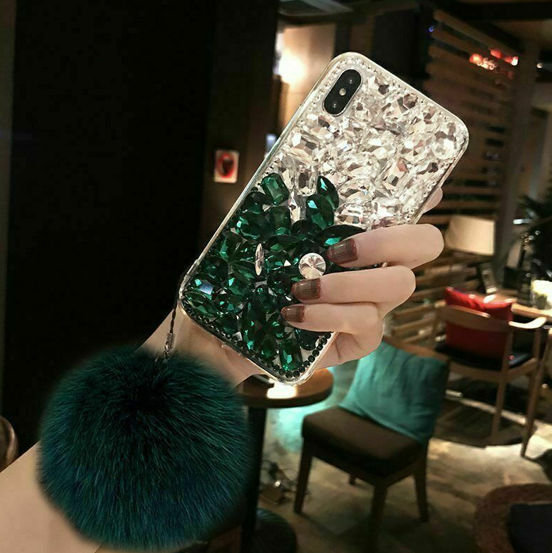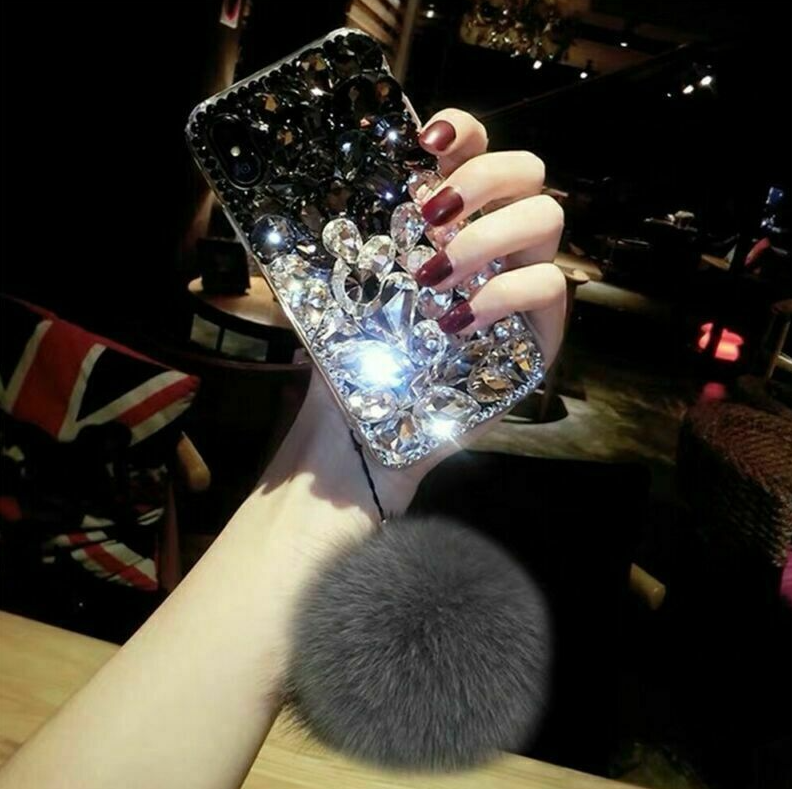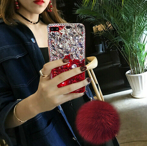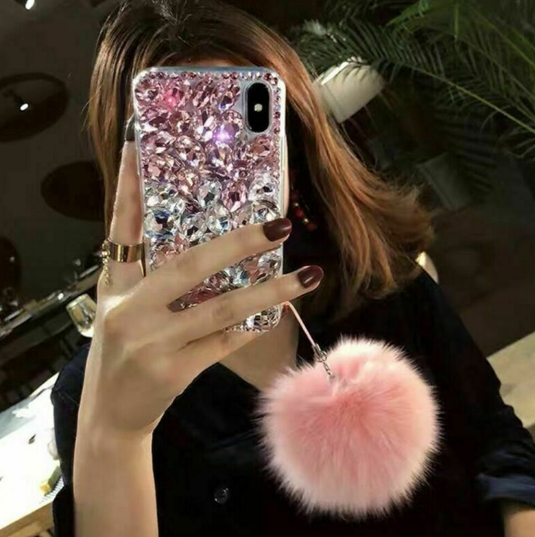 Glitter Bling Diamond Case & Plush Ball For iPhone 12 14 Pro Max 13 11 XS XR 7 8
