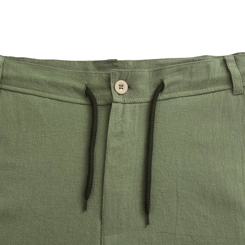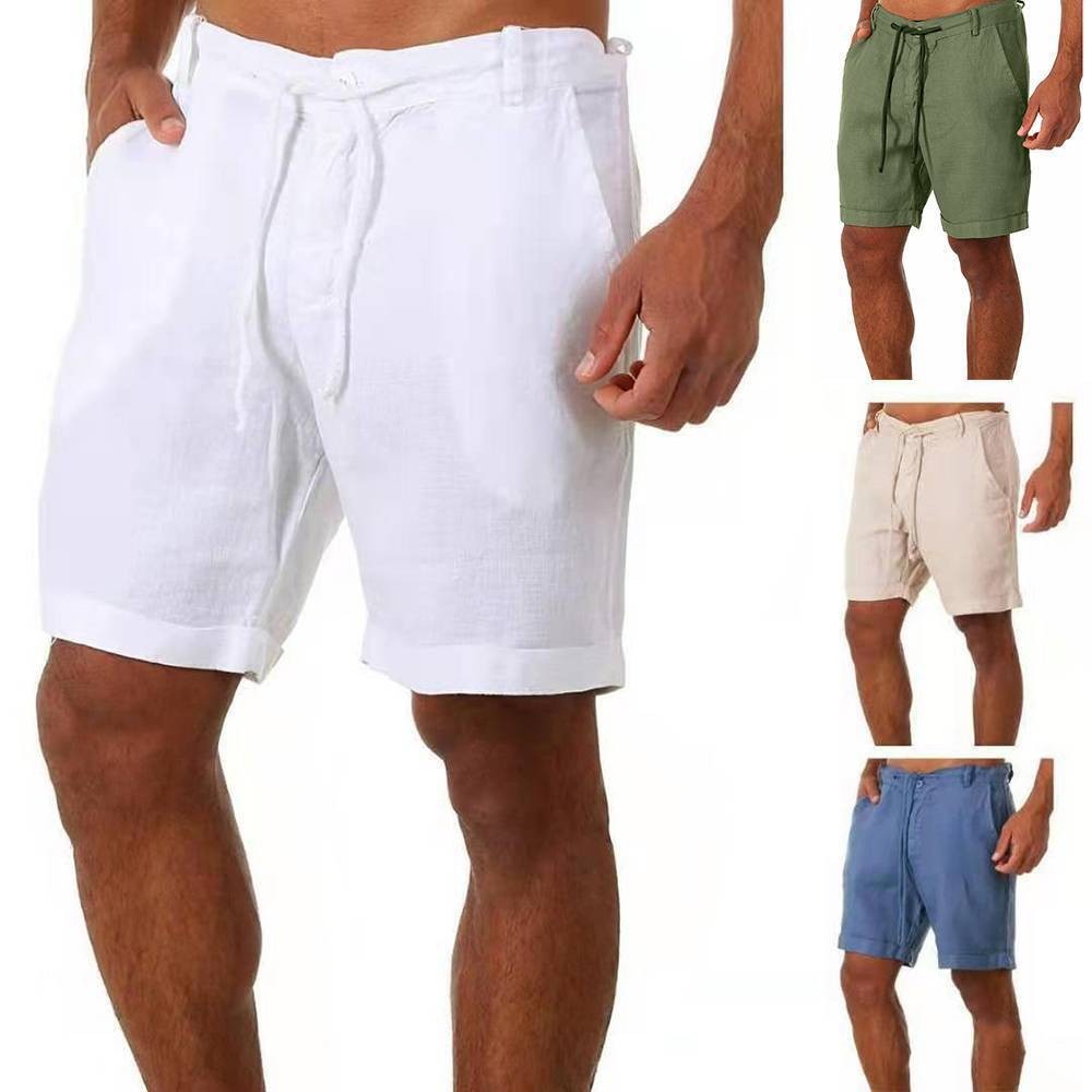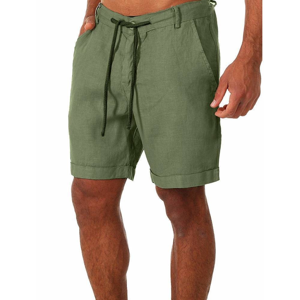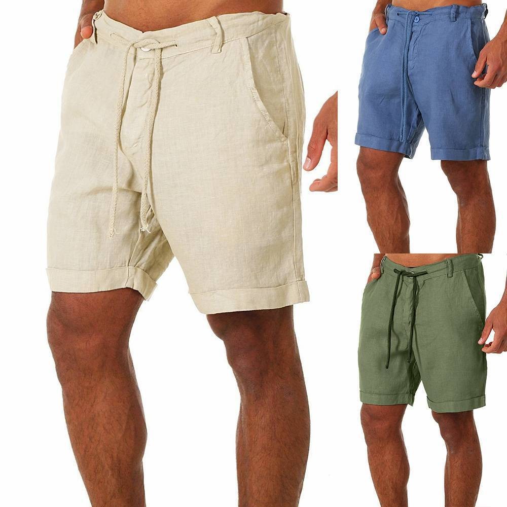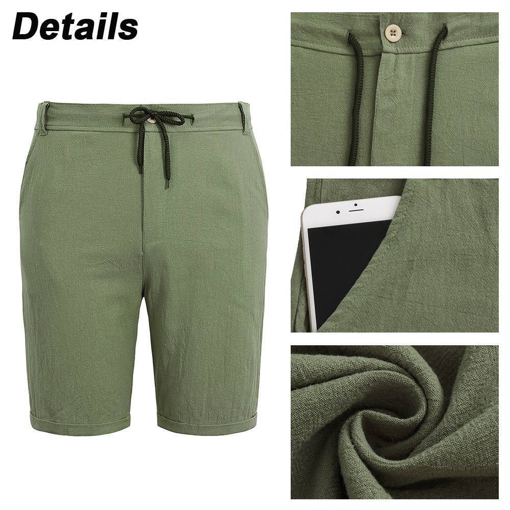 Mens Cotton Linen Shorts Elastic Waist Drawstring Summer Casual Loose Half Pants