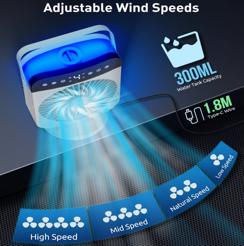 ❄Mini portable air conditioner can save your money and blows cooling wind, keeps your skin moisture and enjoy fresh air, which is very easy and portable to carry & move. It can be multifunctional as a combination of a mini air conditioner, desk fan, misting fan, night light, and humidifier.