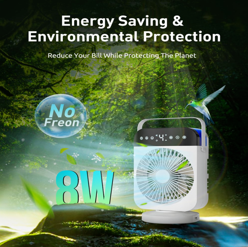 ❄Unlike the traditional air conditioner cooling the temperature with chemicals, an AITREE 10in rechargeable small evaporative air cooler is a new kind of cooler that utilizes water and turns it into mists to cool your down, That it's environmentally friendly and energy-saving. Created with a simple user-friendly design, This 4-in-1 Portable air conditioner fan is designed to create a joyful & convenient summertime for you, starts to work at the press of a single button!