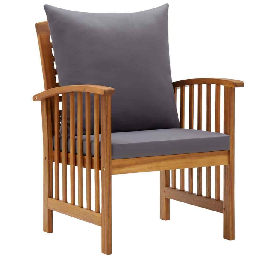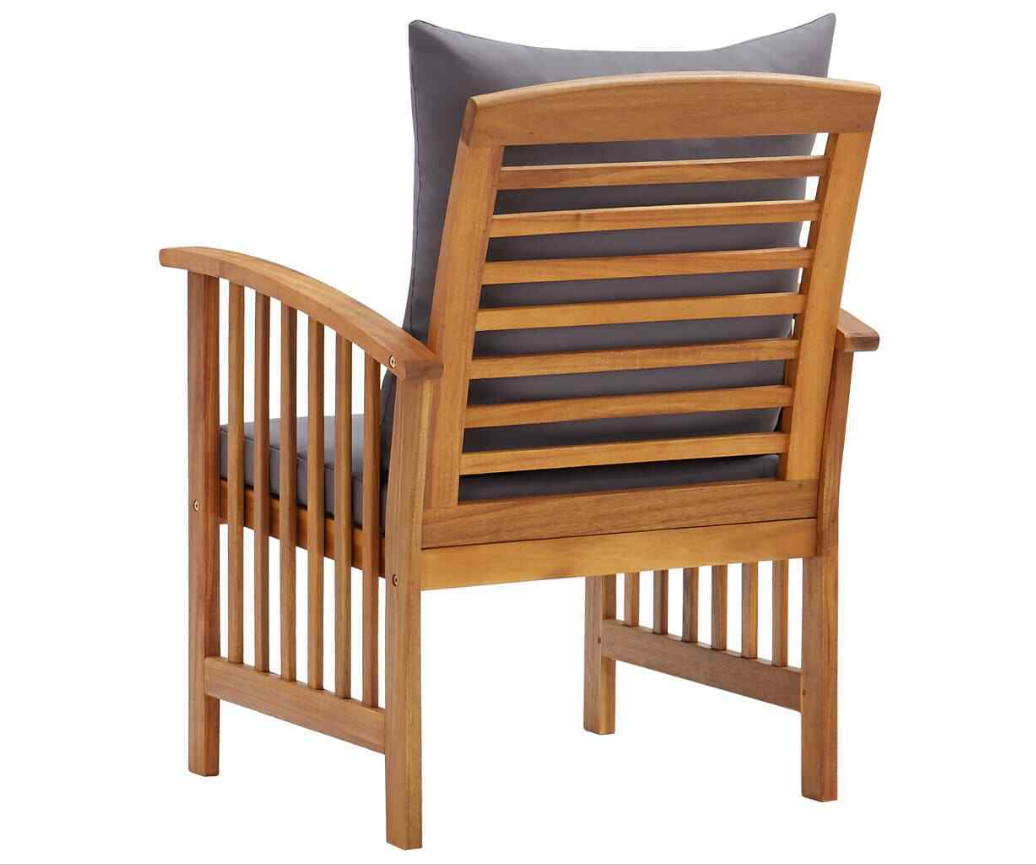 The outdoor chair is made of solid acacia wood with an oil finish, making it stable and durable. The craftsmanship and the beautiful wood grains make every piece of furniture well-defined and slightly different from the next. The seat cushion and back pillow add extra seating comfort to the chair.
