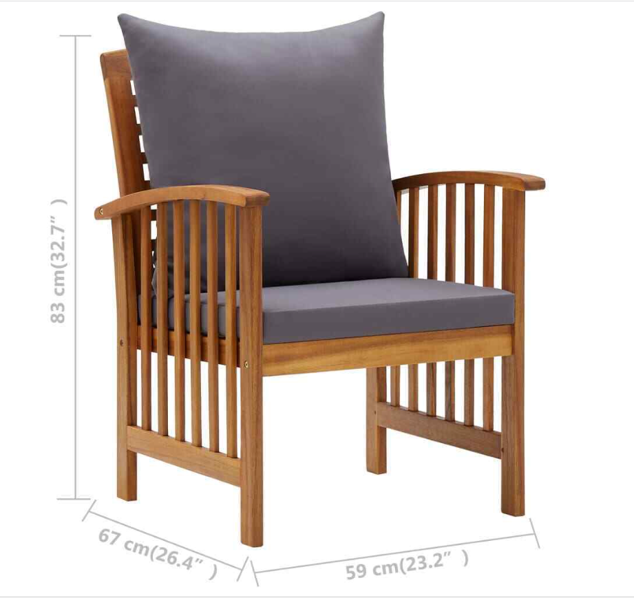 Patio Chairs with Cushions 2 pcs Solid Acacia Wood