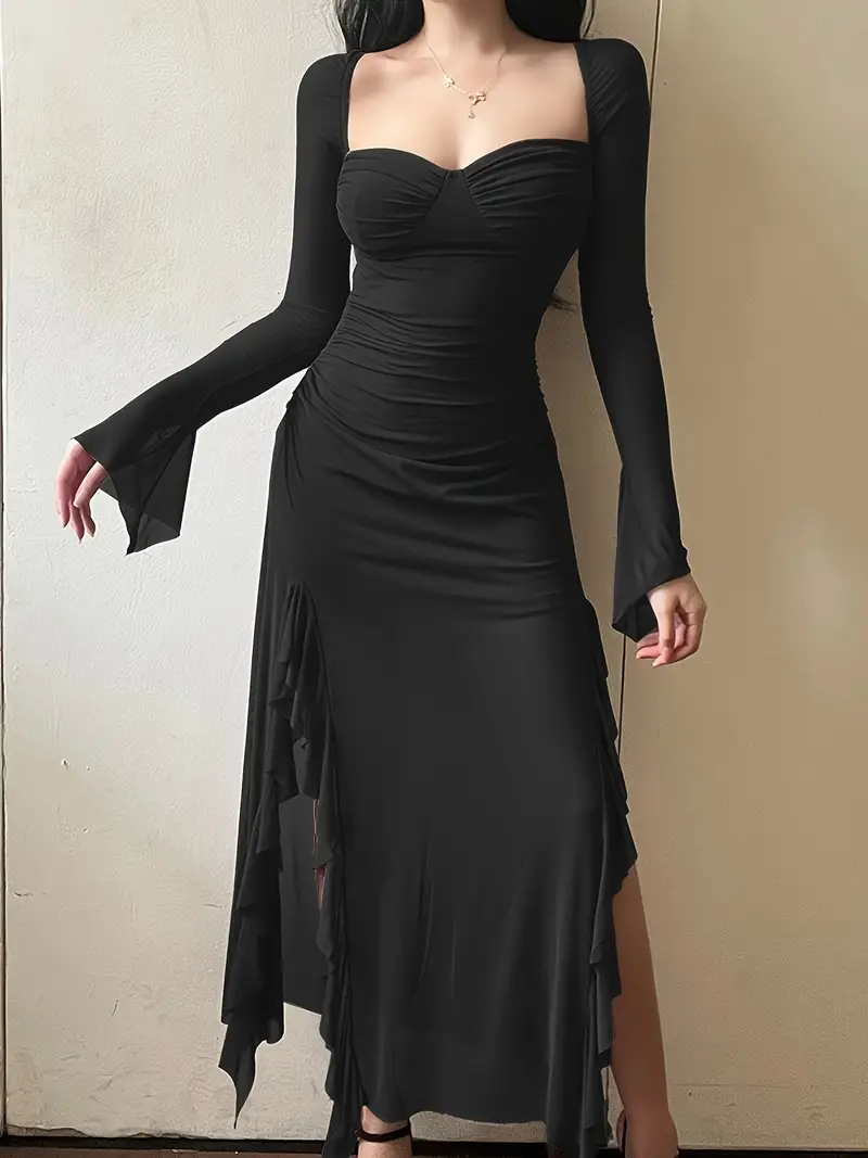 https://mamonoanstore.com/product/solid-ruffle-trim-split-asymmetrical-dress-elegant-flare-sleeve-mesh-ruched-dress-womens-clothing-mwfDh