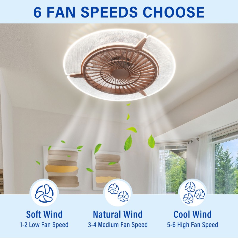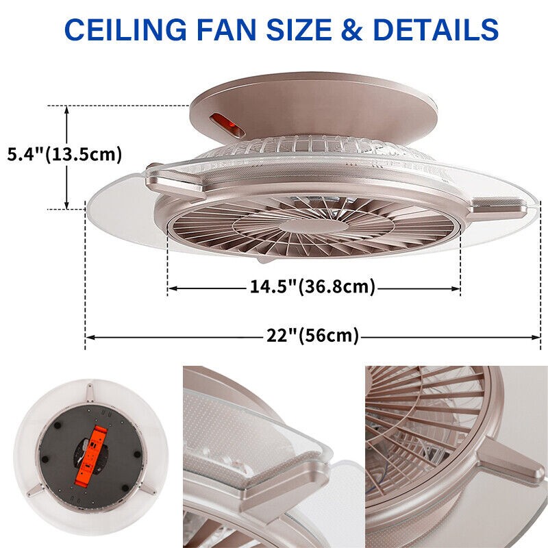 Dimmable Fan Ceiling Chandelier Flush Mount LED Light Lamp Lighting Remote