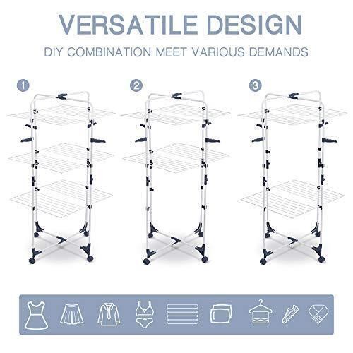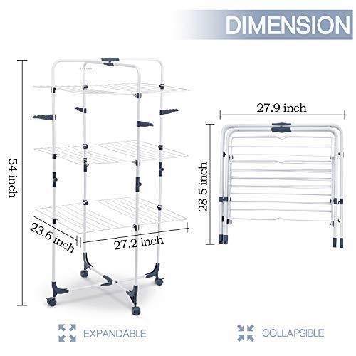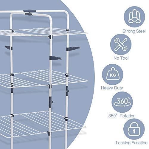 TOOLF Clothes Drying Rack, 3-Tier Collapsible Laundry Rack Stand Garment Drying
