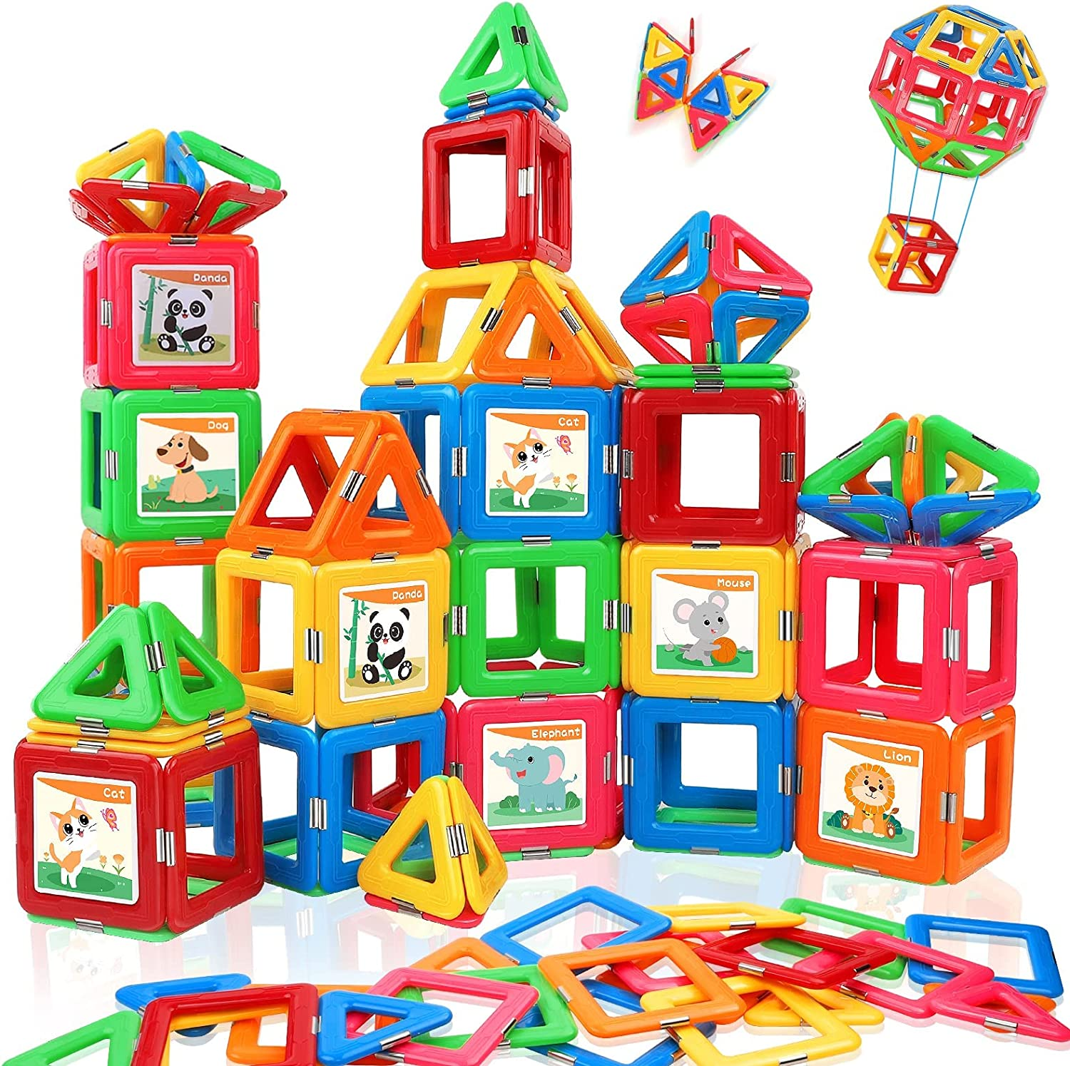 Upgraded Magnetic Tiles for Kids Ages 3-5 4-8 STEM Educational Gifts Toys for 3+